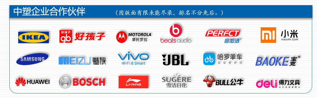 正是憑借著自身強(qiáng)悍的實(shí)力和精益求精的態(tài)度,中塑企業(yè)深受宜家家居,好孩子,小米,華為,三星,公牛,得力文具,李寧等眾多國(guó)內(nèi)外知名品牌客戶的好評(píng),雙方保持著穩(wěn)定的戰(zhàn)略合作關(guān)系。不管是在行業(yè)還是在客戶當(dāng)中,都積累了良好的口碑,更榮獲了高新技術(shù)企業(yè)以及業(yè)內(nèi)榮譽(yù)大獎(jiǎng)。